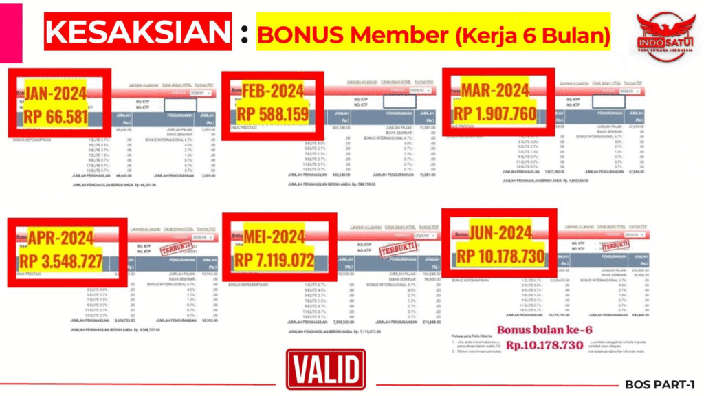 A: TIDAK ADA JAMINAN ! Tidak ada yang bisa menjamin sukses maupun rezeki seseorang, Semua tergantung Kemauan, usaha dan pastinya kehendak dari Tuhan yang maha esa. Jika anda hanya daftar lalu duduk diam tanpa melakukan apapaun, maka bisnis ini tidak cocok untuk anda, karena ini bukanlah bisnis instant yang menjanjikan cepat kaya tanpa ada usaha.